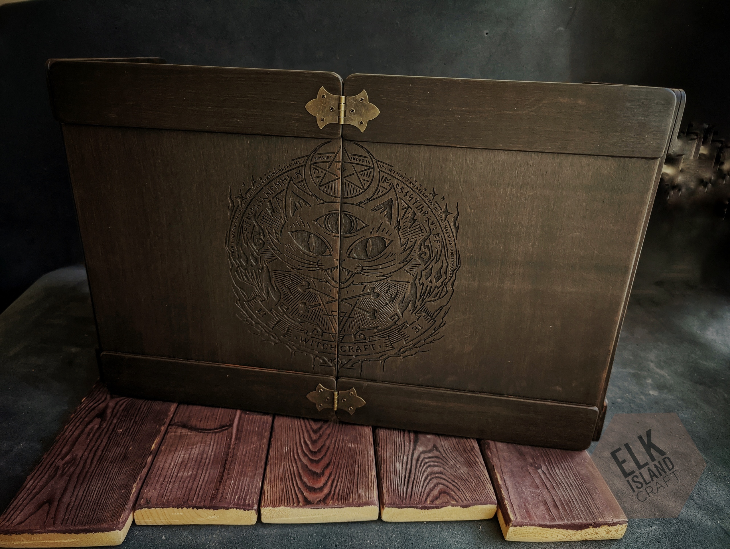 Изготовлена из первосортной прочной фанеры в несколько слоев. Вставлены магниты по 4 шт на каждой створке для крепления листов с информацией о игре, в подарок идут 17шт магнитов(по 4 на створку и 1 доп)!